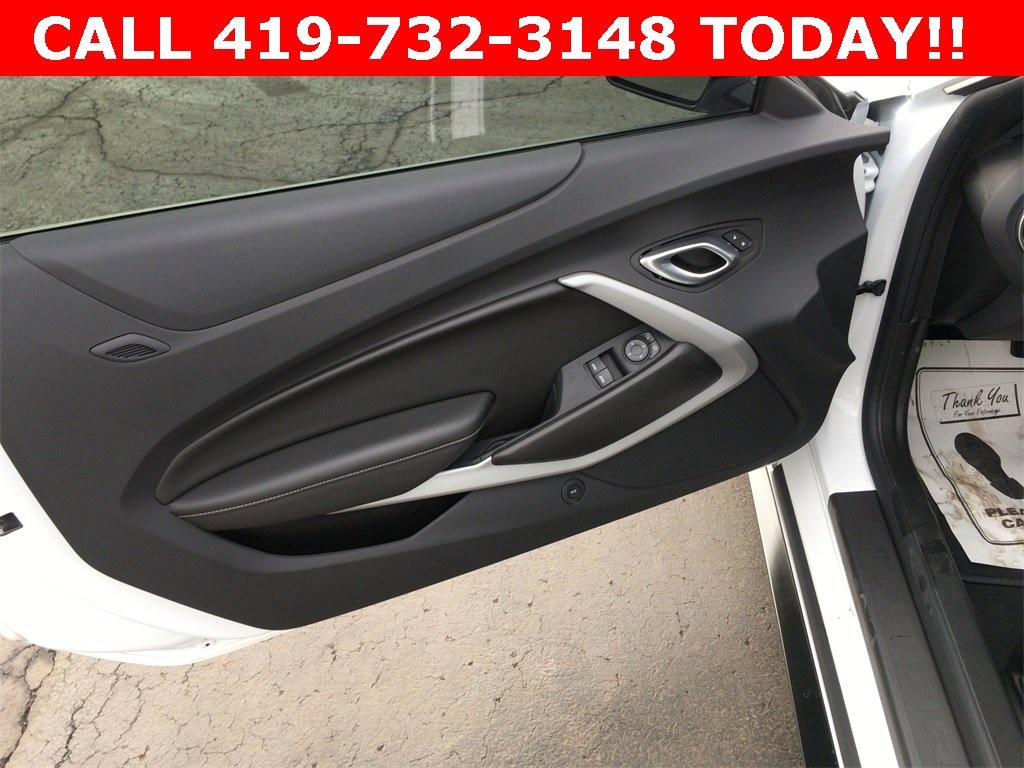 4-Wheel Disc Brakes, 6 Speakers, 6-Speaker Audio System Feature, 6-Way Power Front Passenger Seat Adjuster, 8-Way Power Driver Seat Adjuster, ABS brakes, Air Conditioning, Alloy wheels, Apple CarPlay/Android Auto, Automatic temperature control, Battery Protection Package (LPO), Black Fuel Filler Door w/Gloss Black Insert (LPO), Black Lug Nuts (LPO), Bluetooth® For Phone, Brake assist, Bumpers: body-color, Cloth Seat Trim, Compass, Delay-off headlights, Driver door bin, Driver vanity mirror, Dual front impact airbags, Dual front side impact airbags, Dual Mode Exhaust, Electronic Stability Control, Exterior Parking Camera Rear, Four wheel independent suspension, Front anti-roll bar, Front Bucket Seats, Front Center Armrest, Front reading lights, Front Sport Bucket Seats, Fully automatic headlights, Illuminated entry, Indoor Vehicle Cover Black w/Camaro Logo (LPO), Knee airbag, Leather Shift Knob, Leather-Trimmed Seat Trim w/Sueded Inserts, Low tire pressure warning, Occupant sensing airbag, Overhead airbag, Paddle-Shift Manual Controls, Panic alarm, Passenger door bin, Passenger vanity mirror, Power door mirrors, Power driver seat, Power passenger seat, Power steering, Power windows, Premium audio system: Chevrolet Infotainment System, Radio data system, Radio: Chevrolet Infotainment 3 Plus System, Rear anti-roll bar, Rear window defroster, RECARO Performance Front Bucket Seats, Remote keyless entry, Remote Vehicle Starter System, Security system, SiriusXM w/360L, Speed control, Speed-sensing steering, Steering wheel mounted audio controls, Sueded Flat-Bottom 3-Spoke Steering Wheel, Sueded Microfiber-Wrapped Shift Knob, Tachometer, Telescoping steering wheel, Tilt steering wheel, Traction control, Trip computer, Variably intermittent wipers, Voltmeter.