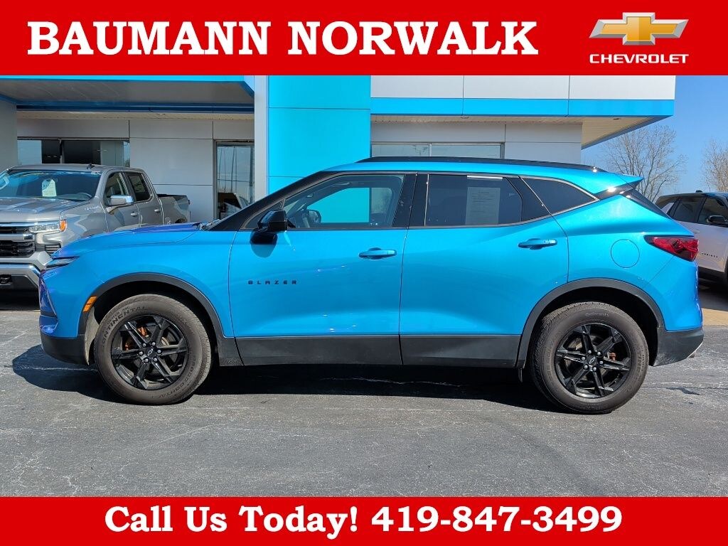 Powered by a 2.0L Turbocharged engine and paired with a smooth-shifting 9-Speed Automatic transmission, the Blazer LT delivers an impressive balance of power and efficiency, with an EPA-estimated 22 city/29 highway MPG. The sleek, modern exterior in a stunning Blue hue is sure to turn heads, while the well-appointed interior offers premium Cloth seating, a Leather-Wrapped Steering Wheel, and a Leather Shift Knob for a touch of refinement.