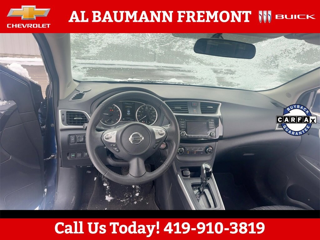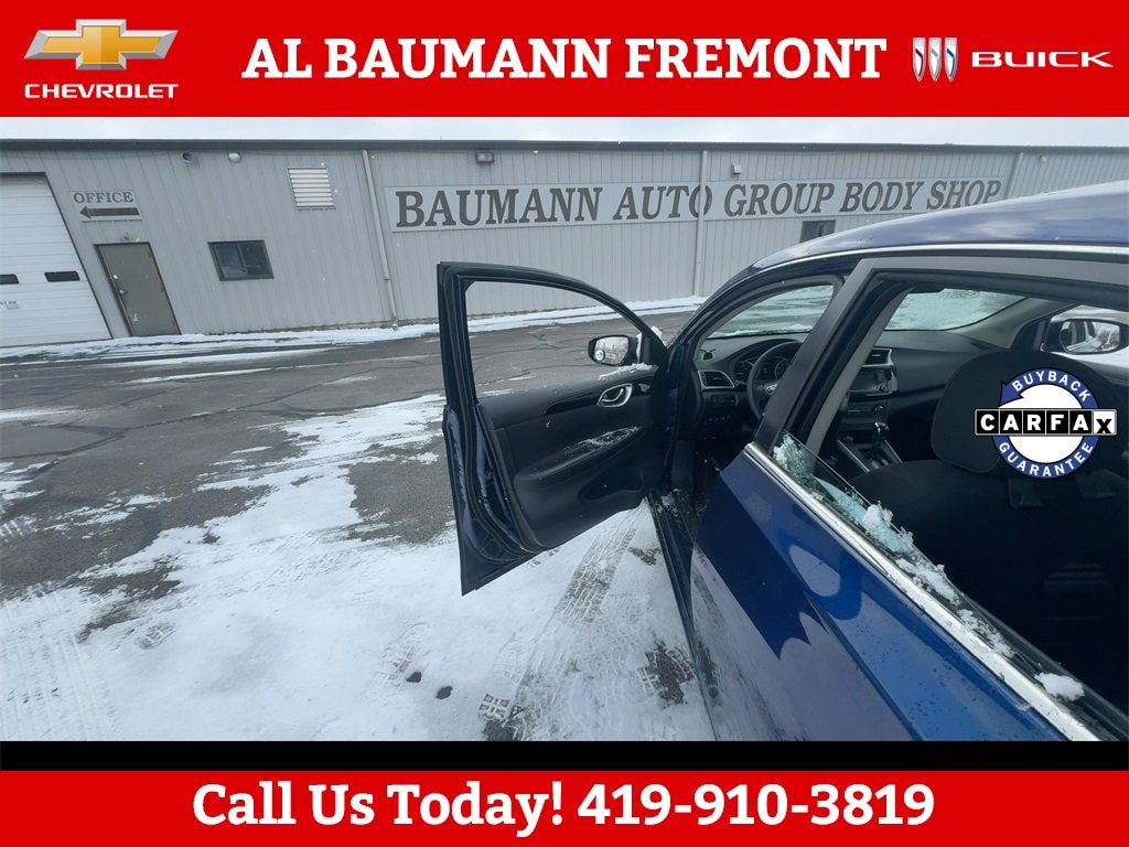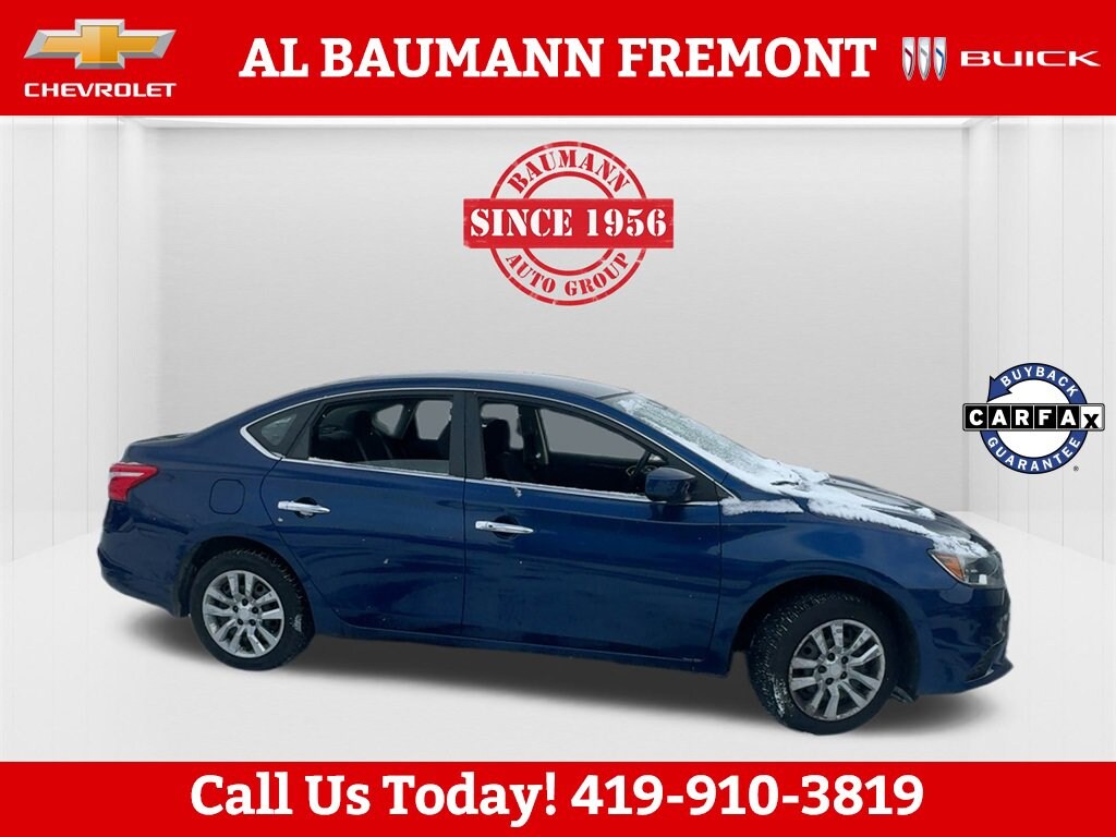 Odometer is 38870 miles below market average!Deep Blue Pearl 2017 Nissan Sentra SV FWD 4D Sedan 1.8L 4-Cylinder DOHC 16V CVT with Xtronic FWDONLY TWO OWNERS CLEAN CARFAX!!Car shopping is sometimes inconvenient and stressful, and we want to take the hassle out of this all-too-common experience. If youâre interested in more convenience, less frustration and a process that works efficiently to meet your needs as a customer. Al BAUMANN AUTO GROUP. The Best Price Up Front Cash Offers For Any Trade-In Multiple Financing Quotes In Minutes A Team Of Dedicated Salespeople.CALL,419-332-8236 or {1-866-330-3601}, CVT with Xtronic, Charcoal w/Cloth Seat Trim, 16 x 6.5 Steel Wheels w/Wheel Covers, 6 Speakers, ABS brakes, Air Conditioning, AM/FM radio: SiriusXM, AM/FM/CD Audio System, Body Colored Splash Guards (4 Piece), Brake assist, Bumpers: body-color, Carpeted Floor Mats w/Trunk Mat, CD player, Delay-off headlights, Driver door bin, Driver vanity mirror, Dual front impact airbags, Dual front side impact airbags, Electronic Stability Control, Exterior Parking Camera Rear, Front anti-roll bar, Front Bucket Seats, Front Center Armrest, Front reading lights, Front wheel independent suspension, Fully automatic headlights, Hide-Away Trunk Net, Illuminated entry, Low tire pressure warning, Occupant sensing airbag, Outside temperature display, Overhead airbag, Overhead console, Panic alarm, Passenger door bin, Passenger vanity mirror, Power door mirrors, Power steering, Power windows, Premium Cloth Seat Trim, Radio data system, Rear anti-roll bar, Rear seat center armrest, Rear window defroster, Remote keyless entry, Security system, Speed control, Speed-sensing steering, Split folding rear seat, Steering wheel mounted audio controls, Tachometer, Telescoping steering wheel, Tilt steering wheel, Traction control, Trip computer, Variably intermittent wipers, CVT with Xtronic, Charcoal w/Cloth Seat Trim.